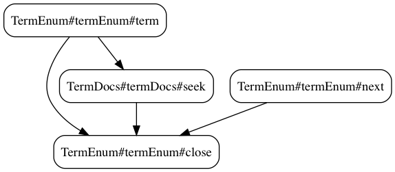 TermEnum#term -> TermDocs#seek;TermDocs#seek -> TermEnum#close
