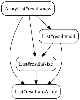 ArrayList#new -> List#size;List#size -> List#toArray;List#add -> List#size